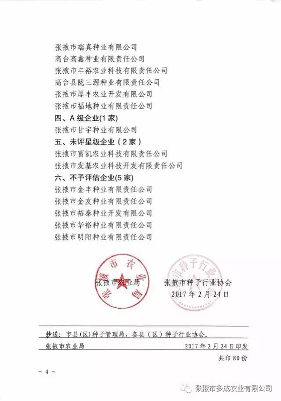 | 熱烈祝賀張掖市多成農(nóng)業(yè)有限公司被評為2017年度信用等級AAA級企業(yè)! | ||